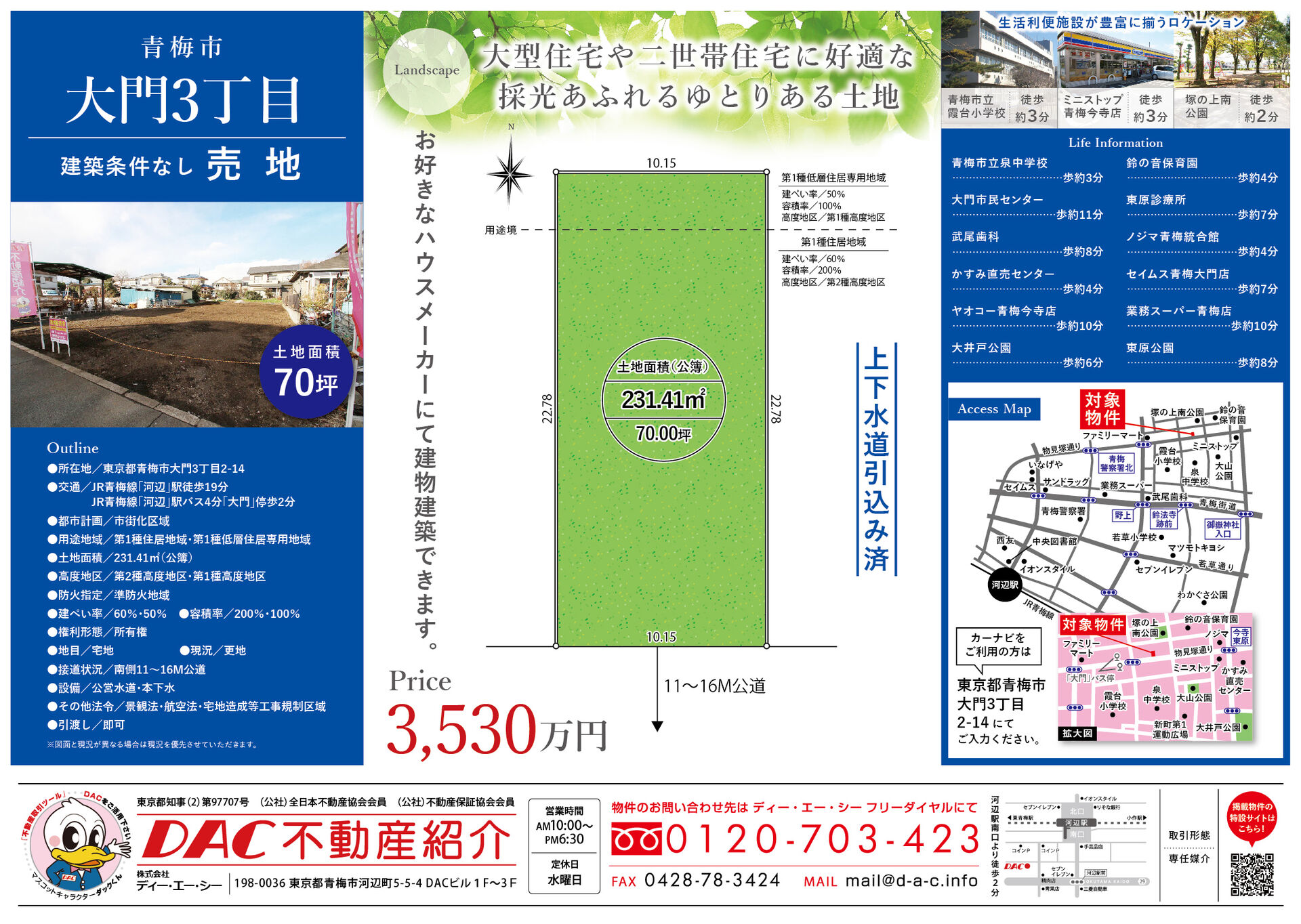 青梅市大門3丁目にて建築条件無し売地のご紹介です!